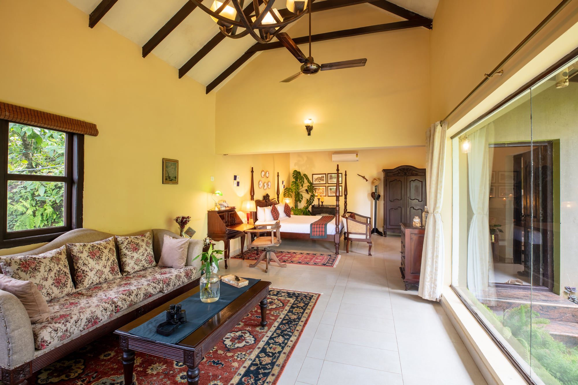 Indulge within our vintage suites replete with handpicked period furnishing, offering breathtaking vistas of Coorg’s famed rolling hills and misty mornings. Unwind in style as you soak in the elegance of a private bathtub in nature’s embrace. Our well appointed suite rooms, which can be interconnected, these suites are highly recommended as one of the best in Coorg for family travelers and those seeking luxury hotels in Coorg.